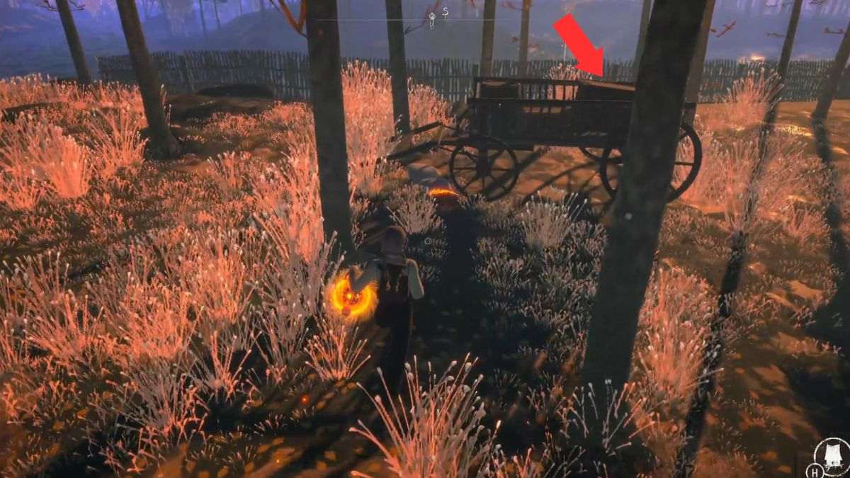 クエストの次の部分はシンプルです。魔女の小屋を出ると、地図にマークする必要がある松の枝に直行します。それを集めてから、後ろに戻り、庭の鶏の1つを拾います。