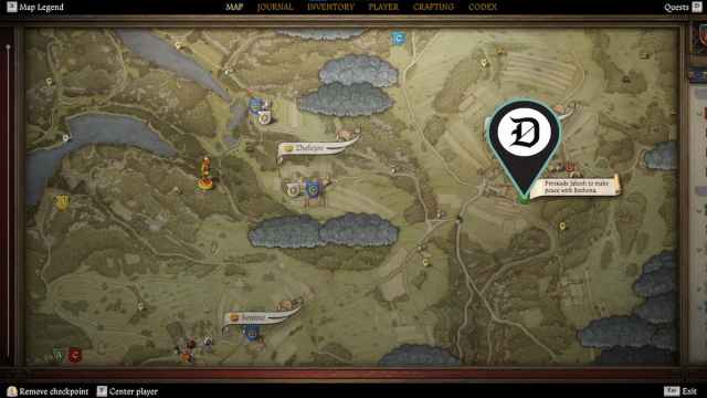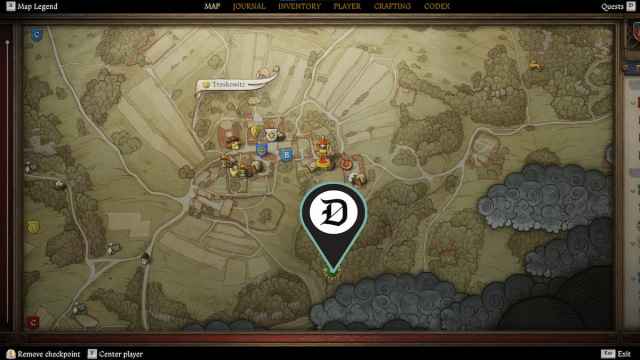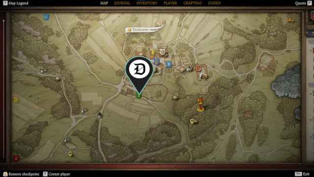 Troskowitzのすべての市民と、パブレナがどこに行ったのか、誰かが彼女を見たことがあるかどうかについて話すことができます。時間を節約するために、Apothecary Emmerichと話すことをお勧めします。彼は町の南西部でポーション、錬金術の素材、その他のレシピを販売しているのを見つけることができます。あなたが彼にパブレナについて尋ねると、彼は彼女がローマと他の木版画の周りにぶら下がって、町の東側の木版画エリアに向かっているとあなたに言うでしょう。