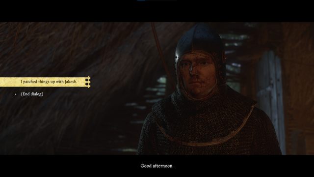 スピーチ、カリスマ、ドレッドなど、3つの話すスキルのいずれかを使用することで、より良い選択になると確信することを選択できます。ただし、パブレナが妊娠していることを知っている場合、Jakeshにこれが憎しみのサイクルを壊すように彼に説得することを伝える。彼は、パブレナの子供が良い生活を送ることができるようにするためにボズヘナを許し、さらに彼らを村に招待することさえあることを許すことに同意します。彼はまた、起こったことすべてに対して補償を提供します。