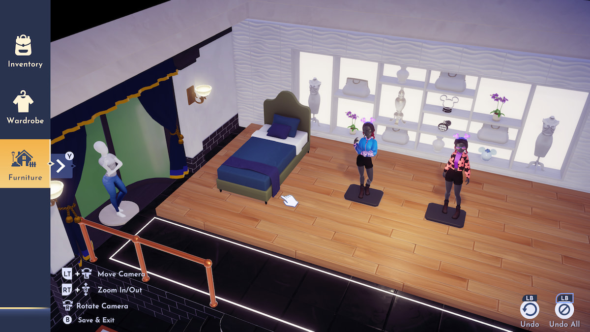 次に、ステージ上のマネキンに近づき、それらと対話します。摩耗または編集の2つのオプションがあります。を押します編集現在の服をマネキンに自動的に貼り付けるボタン。チャレンジを完了するには、マネキンの1つにいるだけです。着いたら、家具部分に移動できます。