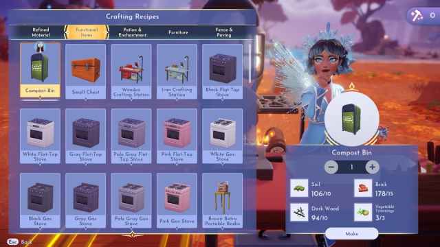 必要なすべてのリソースを手に入れたら、谷の周りのクラフトステーションに向かいます。 functionalアイテムページに移動し、収集したすべての資料を使用します堆肥箱を作成します。
