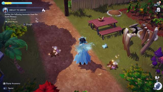 ディズニードリームライトバレーの太陽に照らされた高原から材料を集める