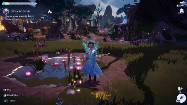 ディズニードリームライトバレーの信頼の空き地でいくつかのワームを掘り出す