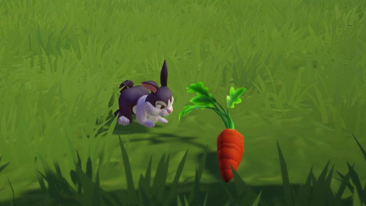 - 平和な牧草地でいくつかのウサギを養うディズニードリームライトバレーで彼らのお気に入りの食べ物
