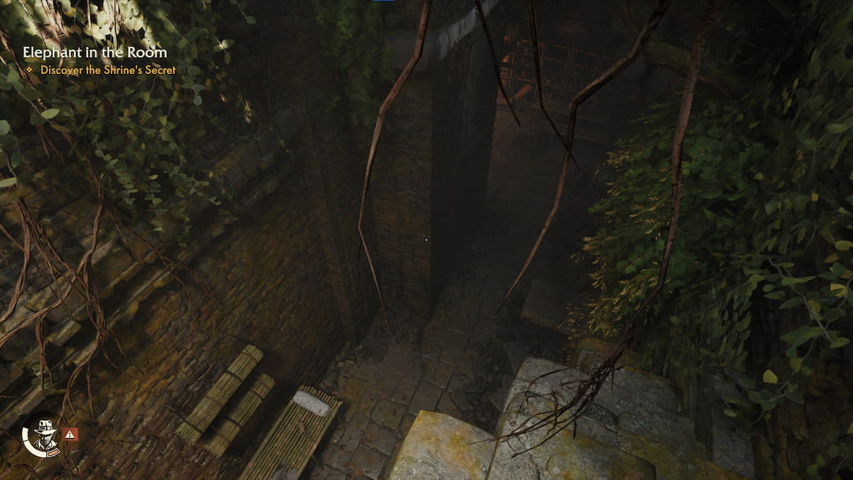あなたはこの部屋の後ろに向かって行き、行き止まりに到達するまで行きたいです。ここから、竹のベッドを見上げて登ります。これで、ジャンプして鞭を使って頂上に登ることができるはずです。そこでは、3番目の象があなたを待っています。象をこの秘密の部屋の入り口に持って来れば、仏像の下にある最後のニッチを解き放つでしょう。