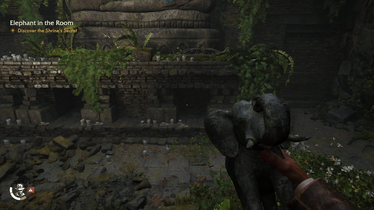 象の彫像は、あなたがこの謎を解明する方法の中心的なメカニックです。最初のものはあなたが右側で見つけるために開かれています。それを取り、右側の仏像の下の台座に置きます。これにより、壁の後ろにある右端にある別の台座が開きます。入り口に戻ると、左に曲がり、セクションを遮断する木製の壁が見つかります。あなたはできるライターを使用して燃やしてください、2番目の象の像を明らかにします。それを取って、右端の先に明らかになった台座に置きます。