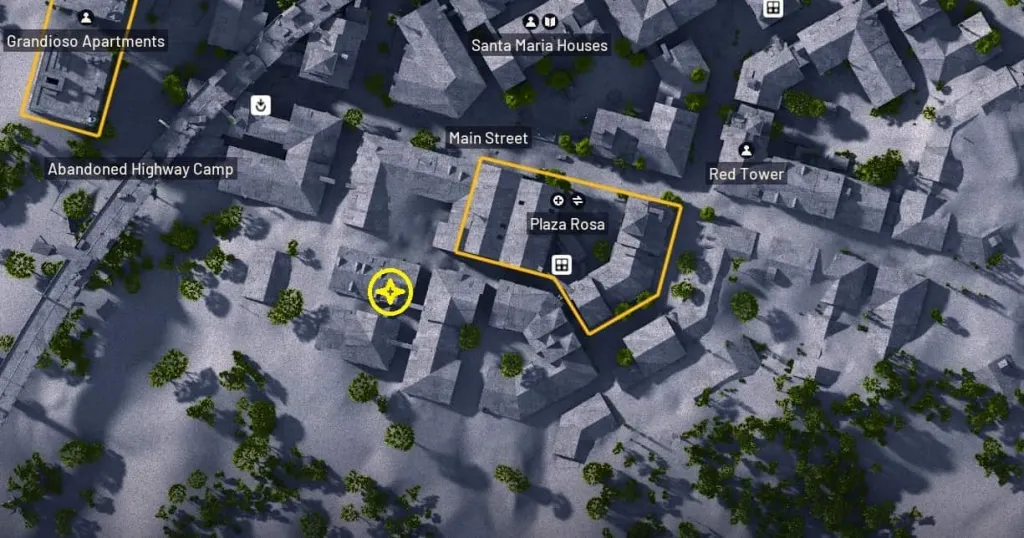 下の地図は、Buried City の地図上でこのエリアが見つかる場所を示しています。屋上にあるよPlaza Rosa POIの南西: