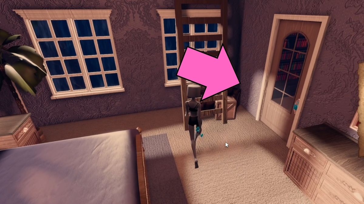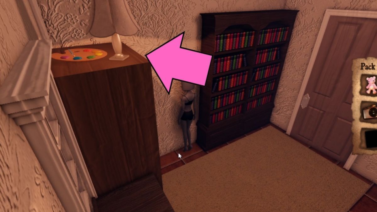 ピンクのドア階下にある洗濯室につながり、生き物の道にあります。キッチンに走ってドアのロックを解除するまで待ちます。あなたはそれをつかみますパレット棚の上から。
