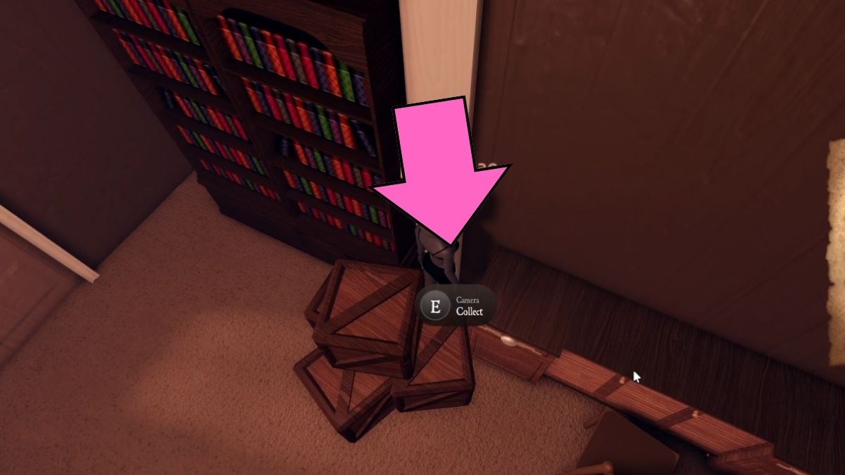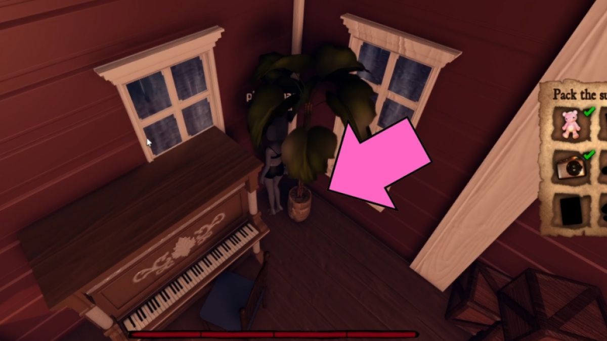今、それはもう少し複雑になります。緑のキーピアノの隣の鉢植えの植物の後ろにあります。クリーチャーがキッチンに入るまでそれをつかむまで待ってから、2階に急いでください。