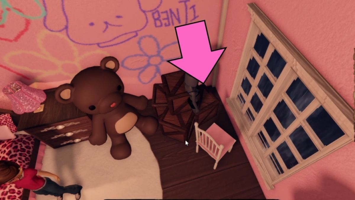 紫色のドア外のガレージにつながる(両頭の怪物からの別の安全なスペース)。厚板の下には、ラナが見つかりますテディベアあなたは彼女に持って行くべきです。