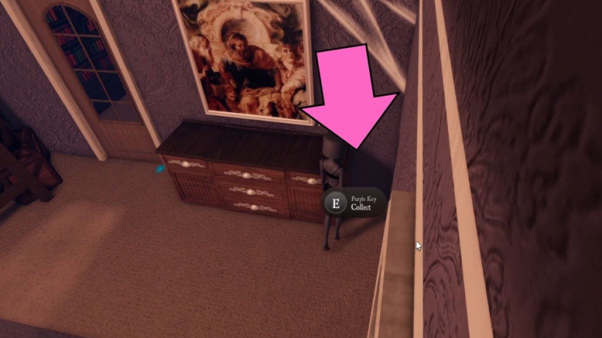 パープルキー両親の寝室にあるので、次にそれをつかむべきです。引き出しキャビネットの右側の角にあります。