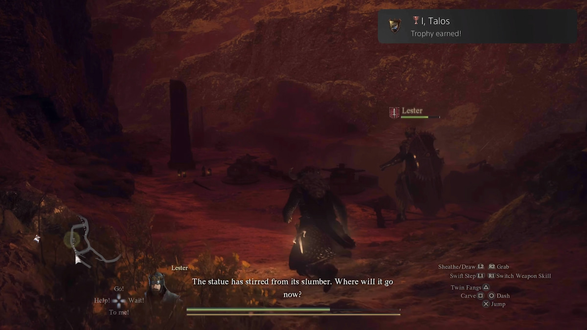 - 発掘サイト:火山島のキャンプの東、掘削現場でゴーレムと戦っている兵士と話をして、ポーンの避難を開始します。