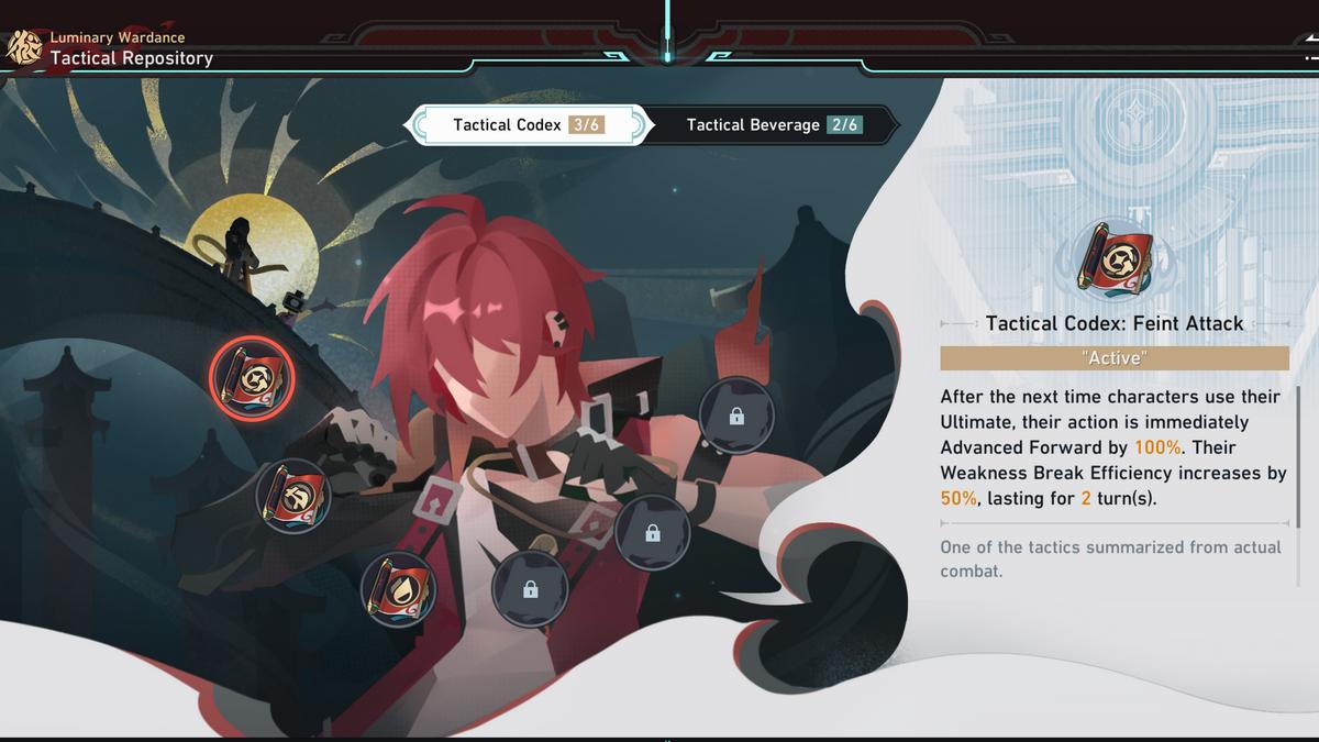 イベントを通して、戦術的なコーデックスと戦術的な飲み物の形でバフのロックを解除します。コーデックスはアクティブバフを提供し、最初から利用できますが、飲み物はイベントの後半でパッシブバフを提供します。