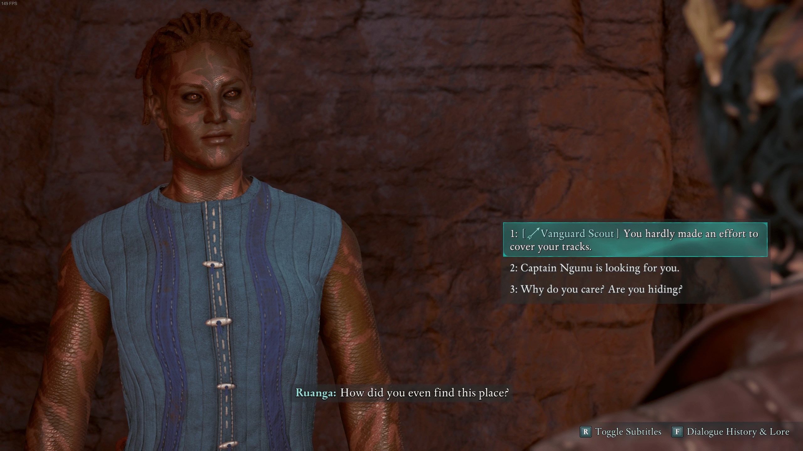 鉱山の内側では、あなたが入った場所から反対側にある木製の足場を上って、左側の小さな洞窟に行きます。ここでは、ヌグヌ船長が彼女を殺そうとしていると考えているルアンガを見つけるでしょう。残念ながら、RuanaにThirdbornに戻ってキャプテンと最終的な飲み物を共有するよう説得することはできません。彼女はあなたが去る前に彼を信頼することに対してあなたに警告します。