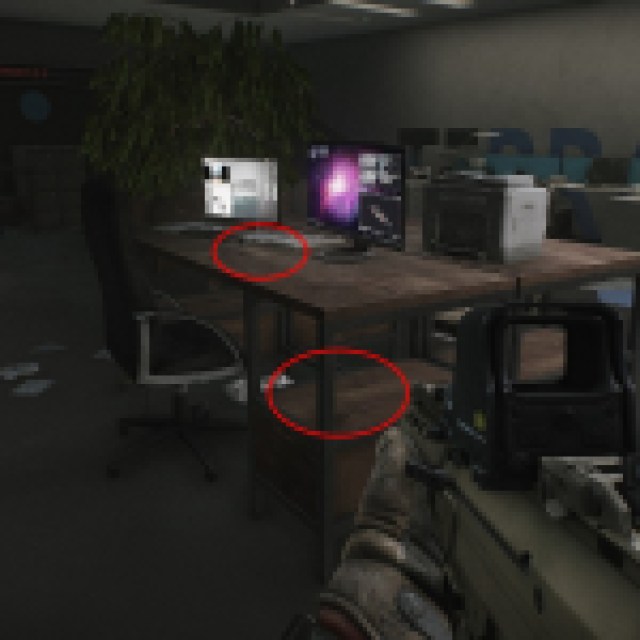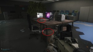 ハードドライブには2つのスポーンがあり、上の画像に囲まれています。ハードドライブができたら、USEC PMCグループを見つける必要があります。入り口にまっすぐ進み、駐車場に通じる廊下を探します(メインの入り口から入ると左廊下)。クエストを終えるために、死体のあるバンの近くに足を踏み入れるだけです。