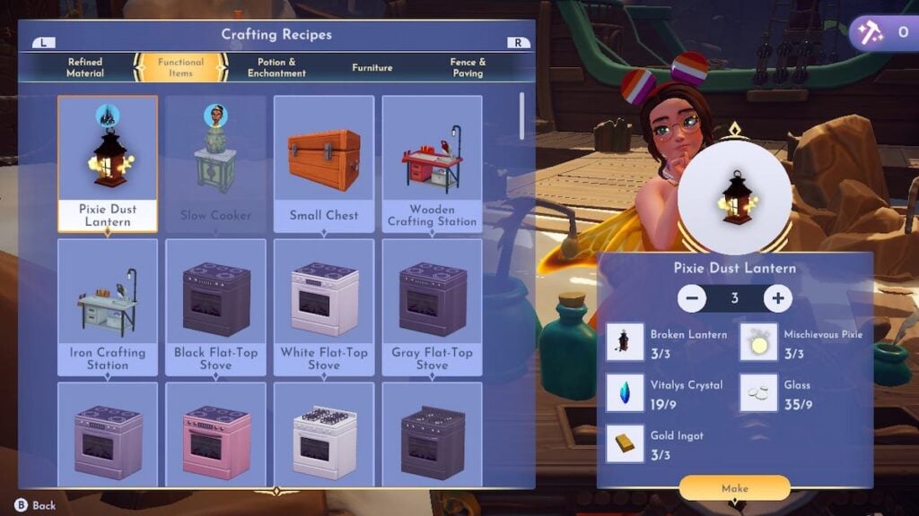 すべてができたら、ピクシーダストランタンを任意のワークベンチにある機能アイテムの下に作り上げます(出口の近くにスカルロックの中に1つあります)。