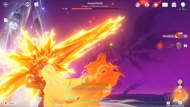 ボスバトルのこの最初の部分の間に、十分な時間が経過するまで、攻撃でGoSoythothをターゲットにします。カットシーンは、Mavuikaと旅行者が彼らの力を組み合わせてGosoythothの燃えるような剣を盗む場所で遊んでいます。