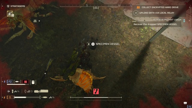 幸いなことに、ミュータント幼虫ポッドを壊したり破壊したりすることはできませんあなたが死んだときにそれを落としますが。これが発生した場合、あなたはそれを地面から集めることができます、そしてその場所はマップに表示されます。幼虫は、落とした可能性のあるサンプルの便利なマーカーとしても機能します。