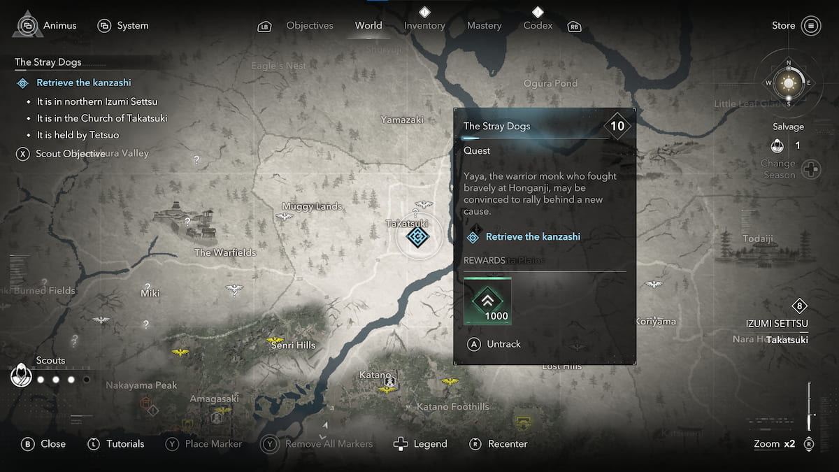 アイテムを保持しているティツオの詳細はすぐには役に立たないが、伊島北部に行く必要があることを知っているし、高さの教会にあるのは良い情報だ。テツオが高さの教会に向かっていることを知っていると、地図上に地域があります北部の伊島sitsuがタカツキという名前を見ることができます。利用可能なスカウトがある場合は、それらを使用してエリアを調査して、必要な場所の場所を狭めます。