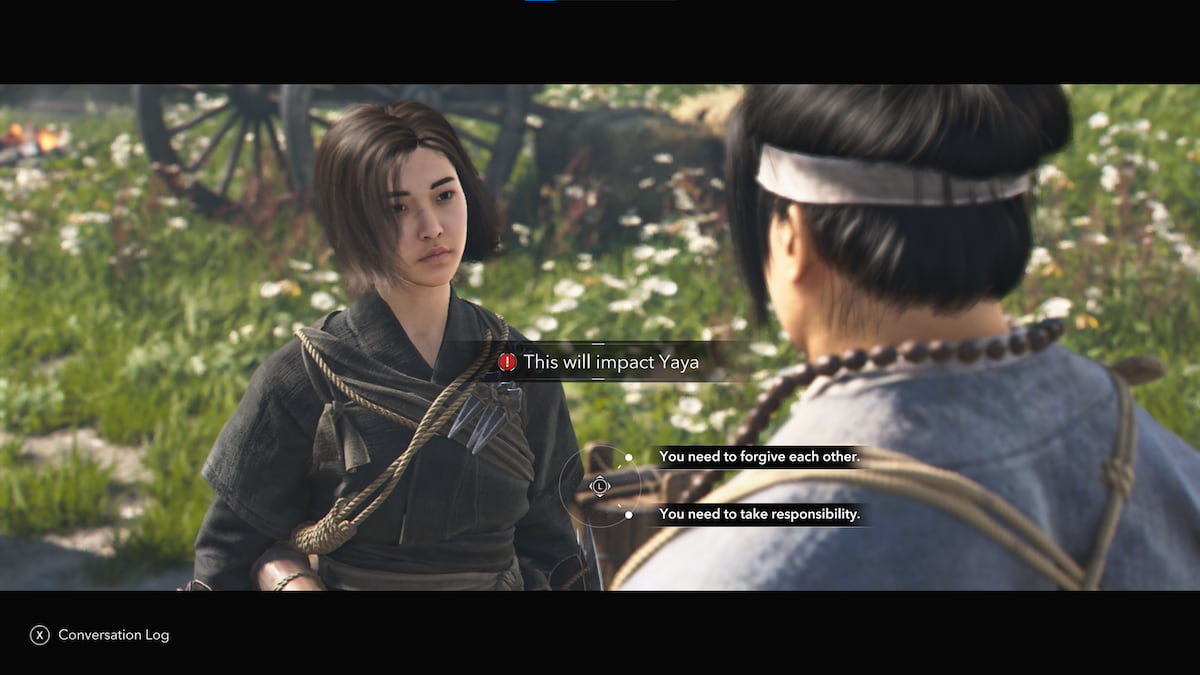 これらの選択は両方とも、あなたとヤヤが議論してきたこと、特に許しと責任に関して構築されています。ここでどちらの決定もできます、しかし、The Stray Dogsクエストの初めに他のオプションと、Mitsumuneに味方したかどうかもっと重要です。