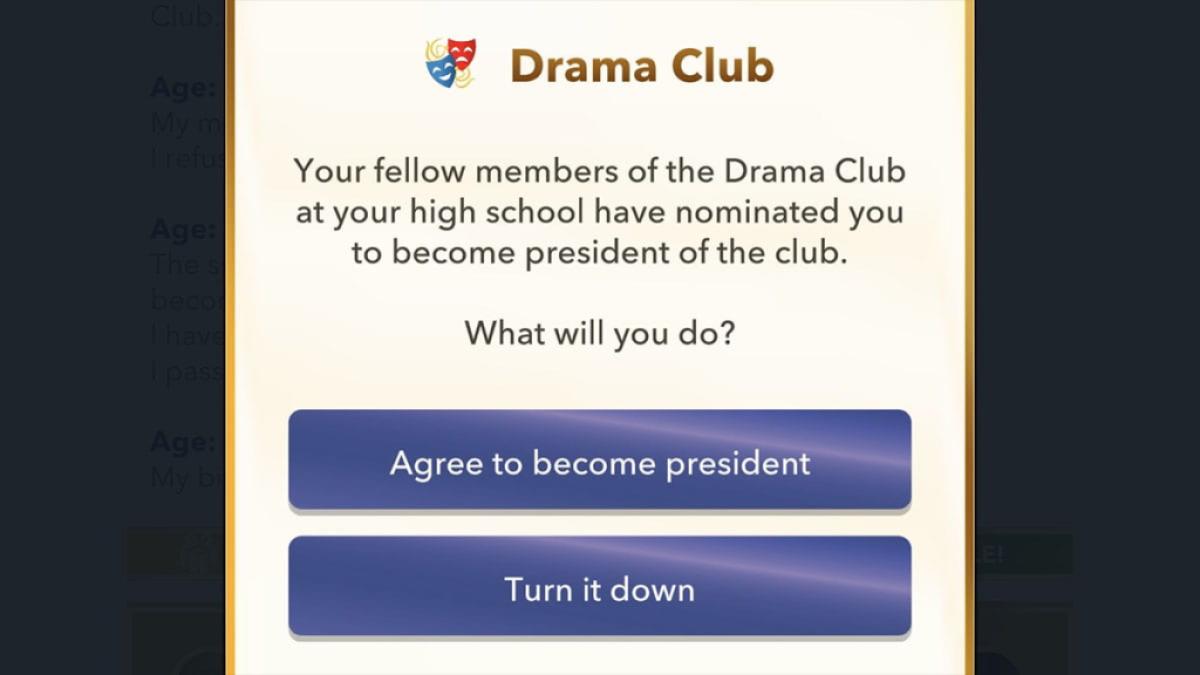 ドラマクラブに参加するには高い成績をとる必要がありますが、必要です高い演技スキル大統領になるために。成績を最大限に活用する必要はありませんが、バーは約70%でなければなりません。ほとんどの場合、これはあなたが参加するために必要なすべてです。ただし、大統領になるためには、安全になるために、習得するために、高い演技スキルを習得する必要があります。年齢を重ね、毎年演技のレッスンを受け、キャラクターが高校に入ったらクラブに再び参加し、成績を最終的に大統領にしてください。