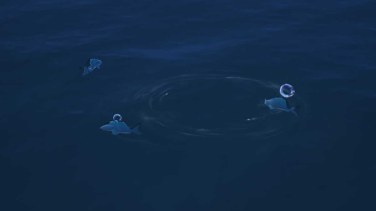 まず第一に、釣りは、Infinityの中心を介して波打つ静けさの釣り能力の衣装を解き放ちました。次に、波紋があり、目に見えるほど泳いでいる場所でのみ釣りをすることができます。