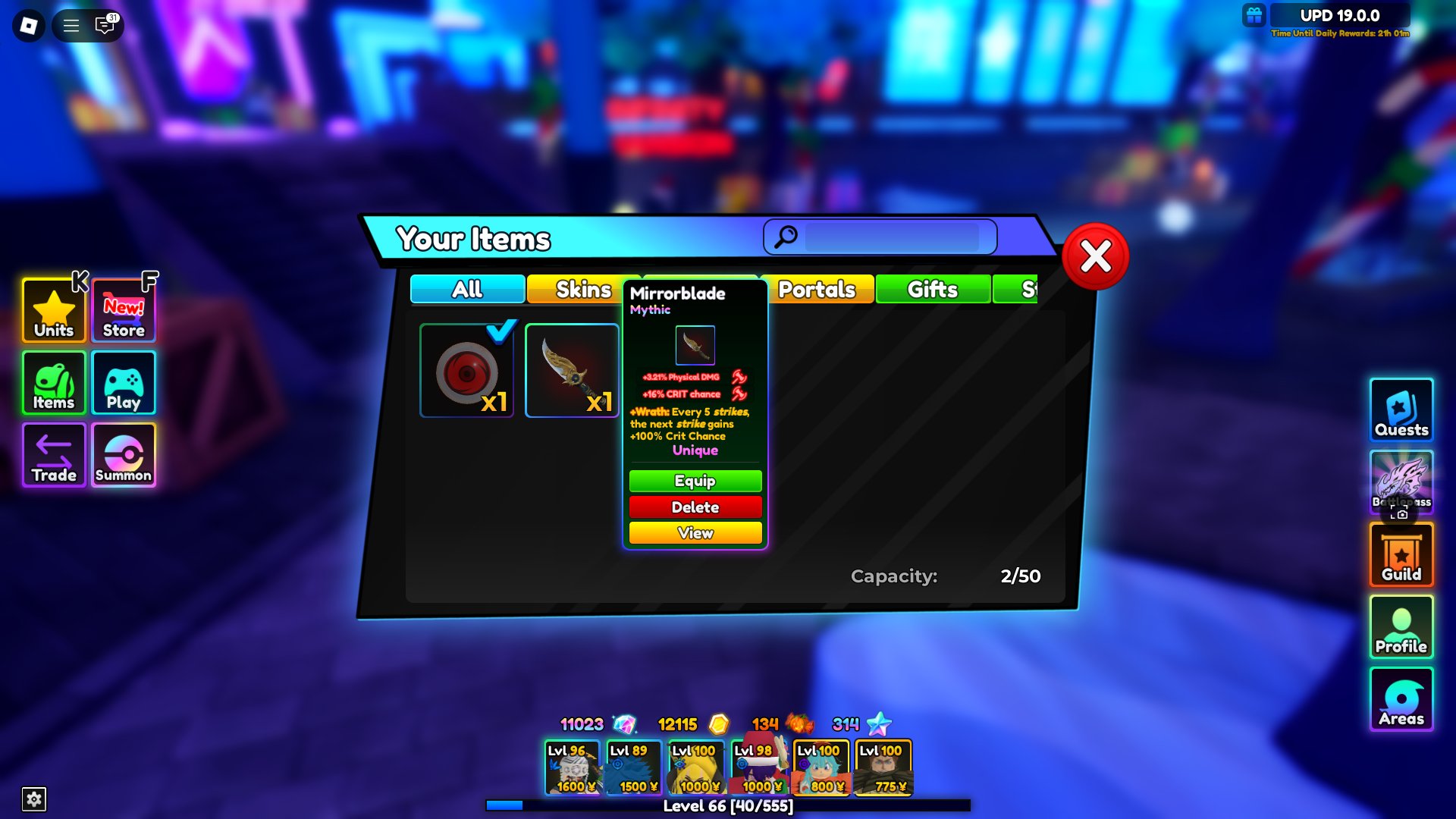 MirrorBladeを入手しますアニメアドベンチャー、で作成する必要がありますGilgamesh Relics NPC使用10個の遺物の破片そして5つの悪魔の魔法書。あなたも必要です10,000ゴールド、これは、過剰なユニットを販売することで最も簡単に取得できます。