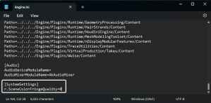 - 開きますEngine.iniもう一度ファイルして、次の行を下に追加します[システム設定]: