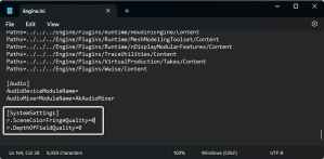 - ここで、を開きますEngine.iniNotepadやNotepad ++などのテキストエディターを使用してファイル