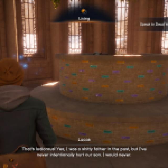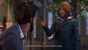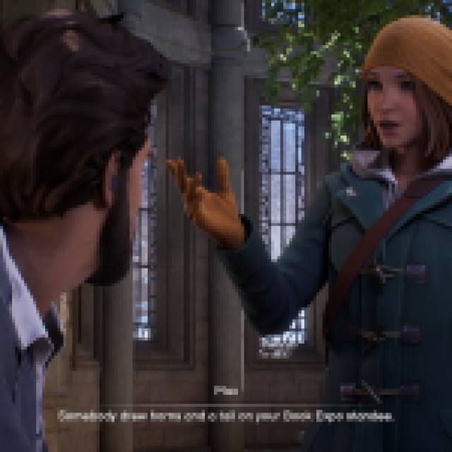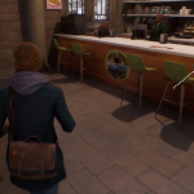 第2章では、マックスは「生きている」タイムラインにいる間、美術の建物内のカフェでルーカスと対話します。このほとんど無害なチャットは、ルーカスが立ち上がって、彼のブリーフケースをロックすることにつながります。