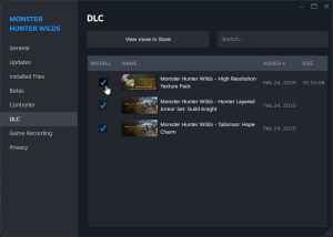 - これを行うには、Monster Hunter WildsとテクスチャパックDLCのチェックを解除します。
