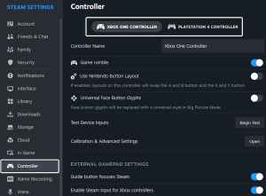 - [コントローラー]タブで、選択します蒸気入力を無効にしますアサシンの信条の影のためにオーバーライドします