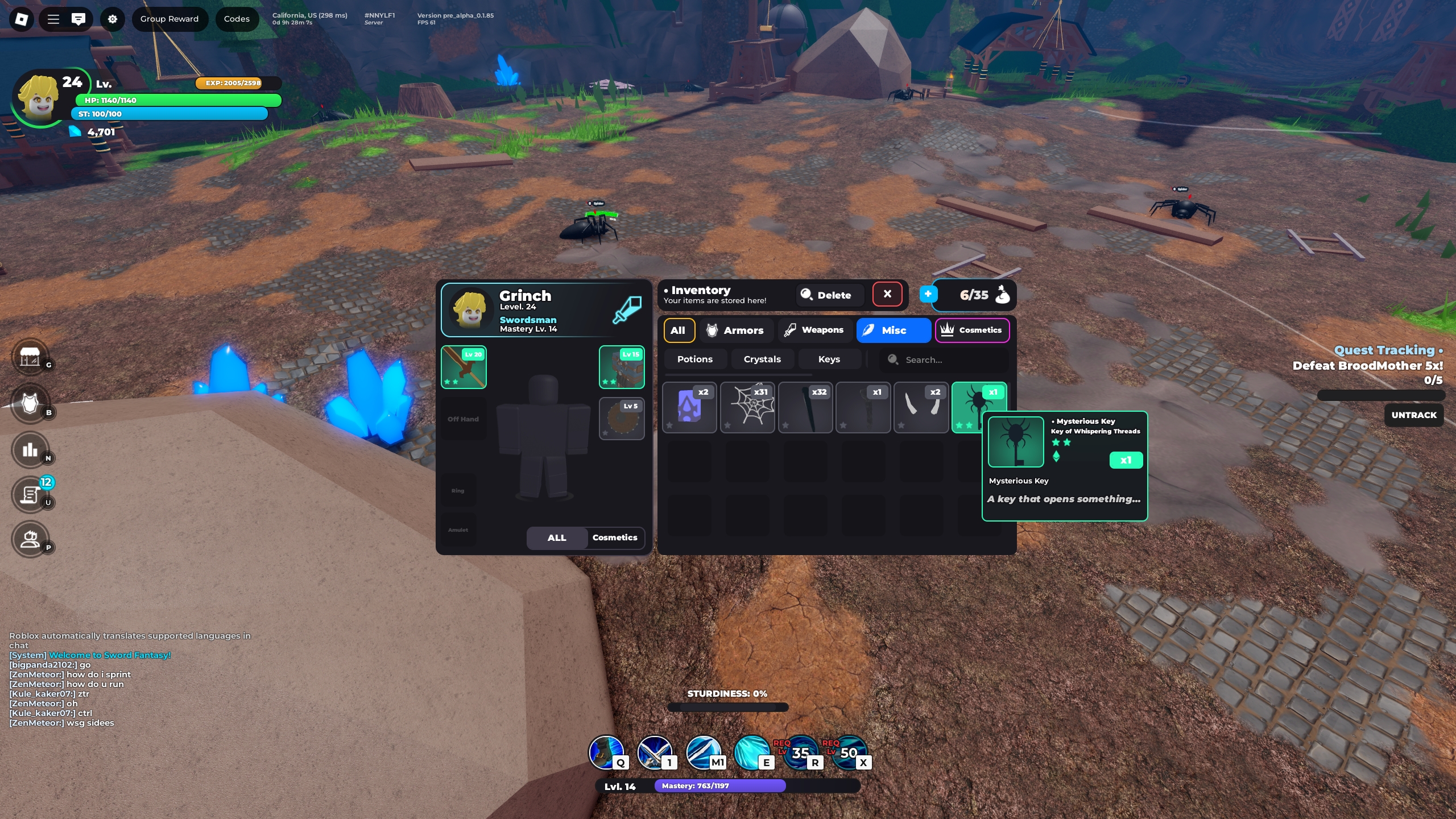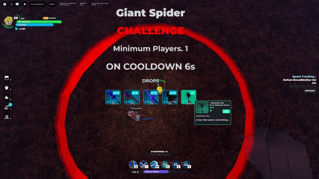 上記のように、キーは巨大なクモのボスから落ちます。実際には、可能な5つのドロップの1つであり、実際には最高のドロップです。では、ドロップレートはいくらですか? 3%!はい、非常に重要なキーアイテムで、3%のチャンスドロップレートしかなくなるまで、進行をほとんど止めます。開発者は、ゲームプレイを人為的に膨らませたいと思っていたか、ドロップレートを台無しにしただけです。これが、ゲームがまだアルファにある理由です。