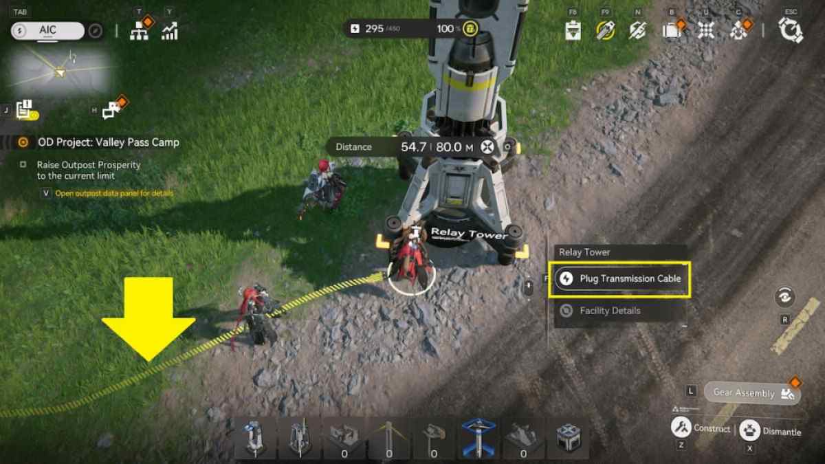 これはあなたに与えます電源コードそれはあなたのアクティブなキャラクターの背後にあります。拡張することができます80メートル、そのため、あなたが置くリレータワーがこの距離を超えないことを確認する必要があります。電源コードがアクティブになったら、リレータワーまたはグリッド内のAICベースに向かい、トランスミッションケーブルをプラグインしますオプション。
