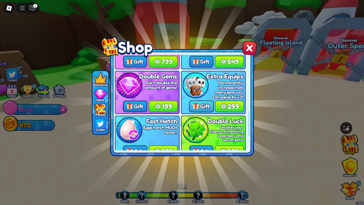 - 199 RobuxのDouble Gemsゲームパスを購入します。これにより、収集するたびに宝石の収入が2倍になります。