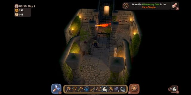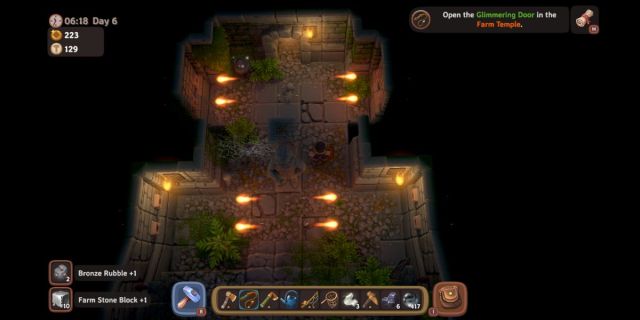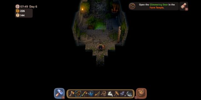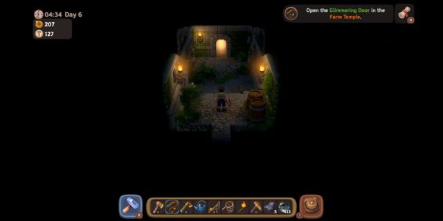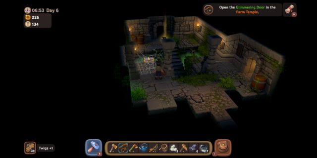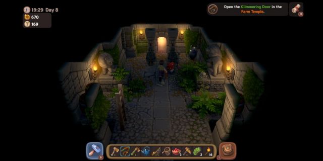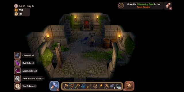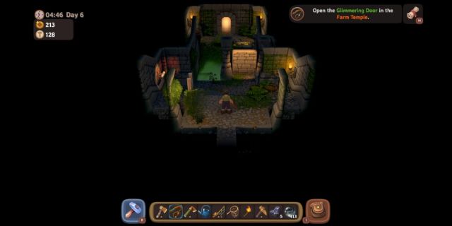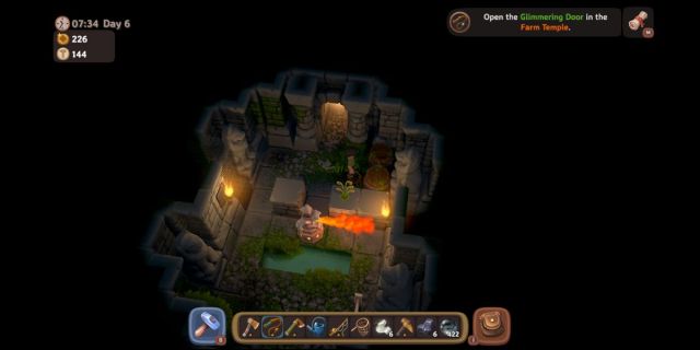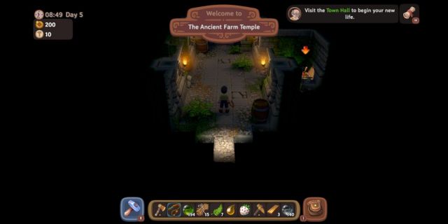 農場の寺院のほぼすべての部屋で、樽、胸、鍋を見つけることができます。トラップと敵は優先度が高くなりますが、銅の鞭ですべての略奪可能なアイテムを打つことを忘れないでください。ベースのリソースを補充してください。