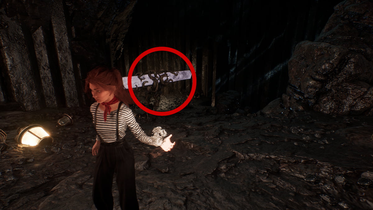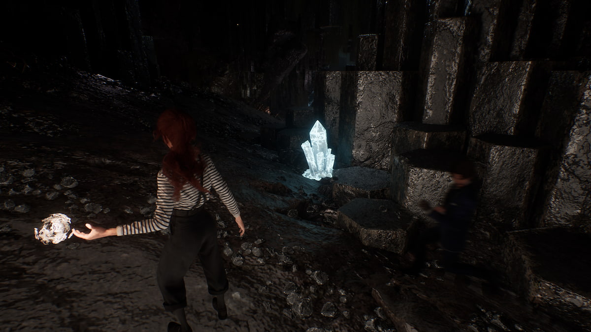 ヘキサを過ぎて、先に洞窟に入ります。次に、グラップルを使用して交差し、ロープを使用して自分を下げます。あなたがまっすぐに落ちると、最初の光沢のある岩が見えますが、問題はそのすぐ隣に数人の敵がいることです。あなたはそれにアクセスするためにそれらを取り除く必要があるかもしれません、またはあなたは忍び寄ることができます。したら、輝く岩を叩き、岩のクリスタルを拾います。