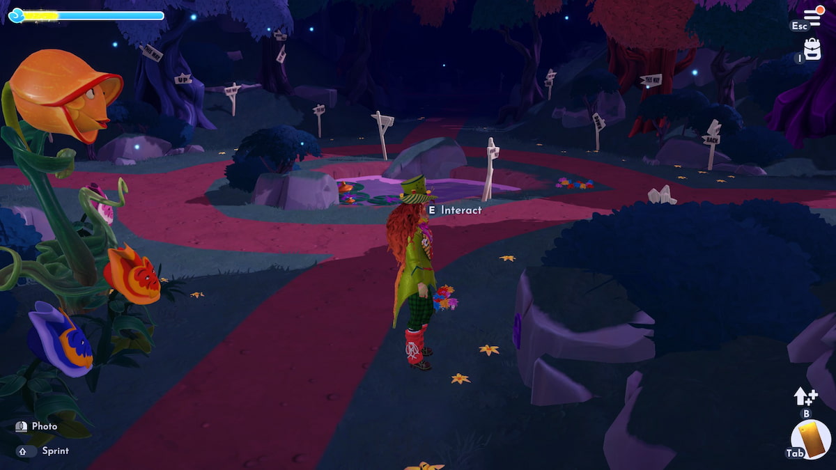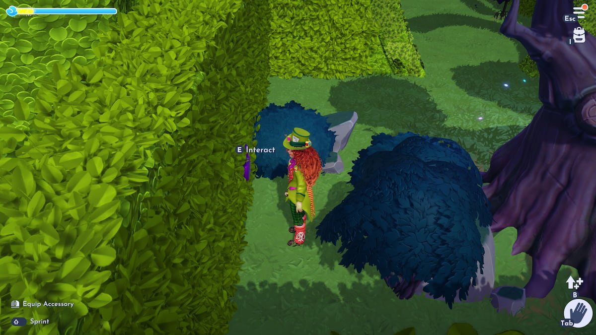 あなたがつかむために必要な最初の鍵は奇妙なキー。このアイテムを見つけるには、バイオームの南西の角近くのチェシャー猫の木に向かいます。この木から、地域の北西の角に到着するまで、2つの森の部分を通る小道を北に向かいます。