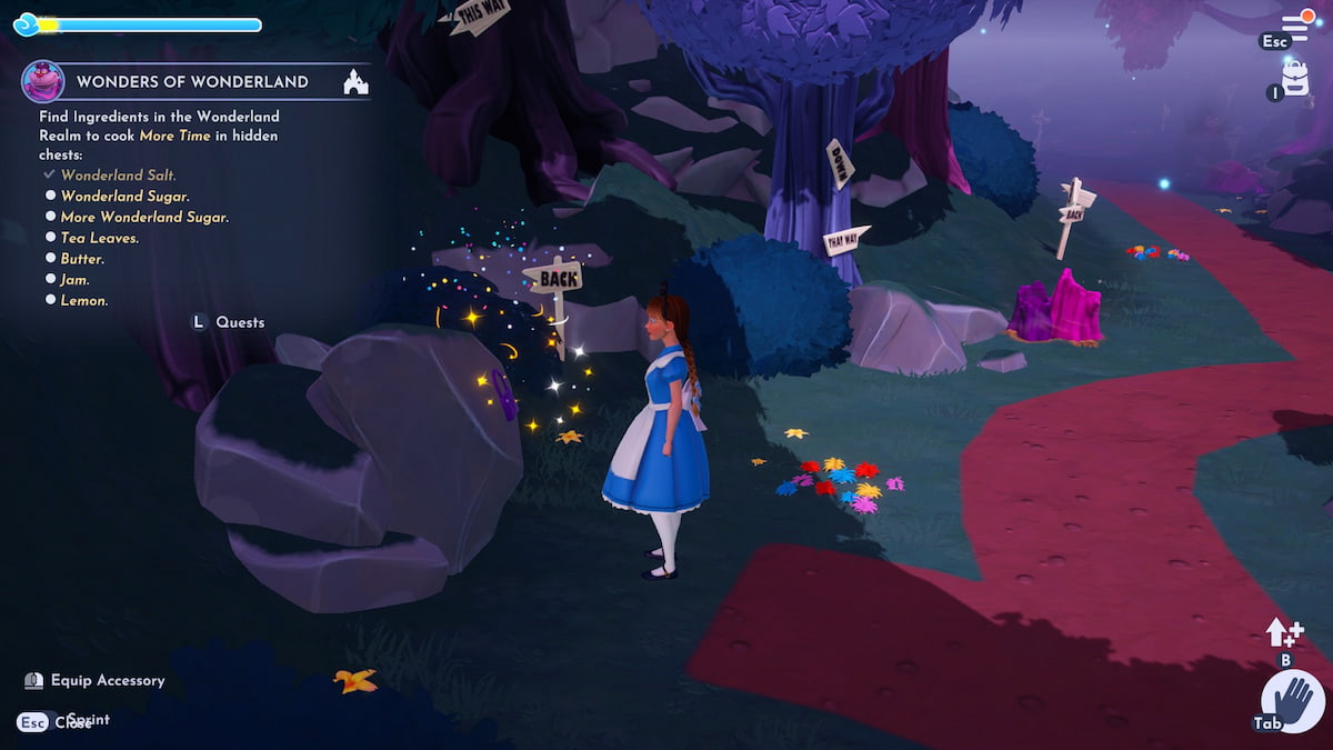 不思議の国の地の領域全体で解決できる秘密のパズルがあり、ディズニードリームライトバレーでいくつかの排他的な報酬を主張しています。この秘密のクエストには、広大な領域の周りに散らばっている一連の紫色の鍵とロックを見つけることが含まれます。