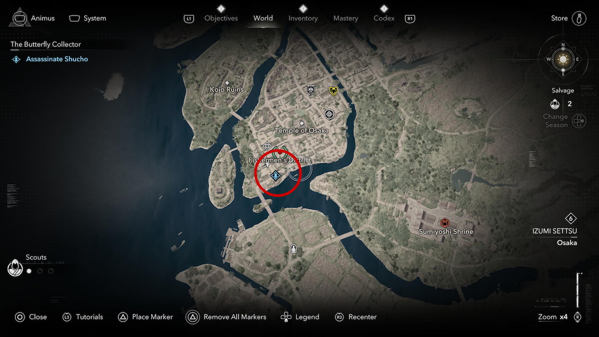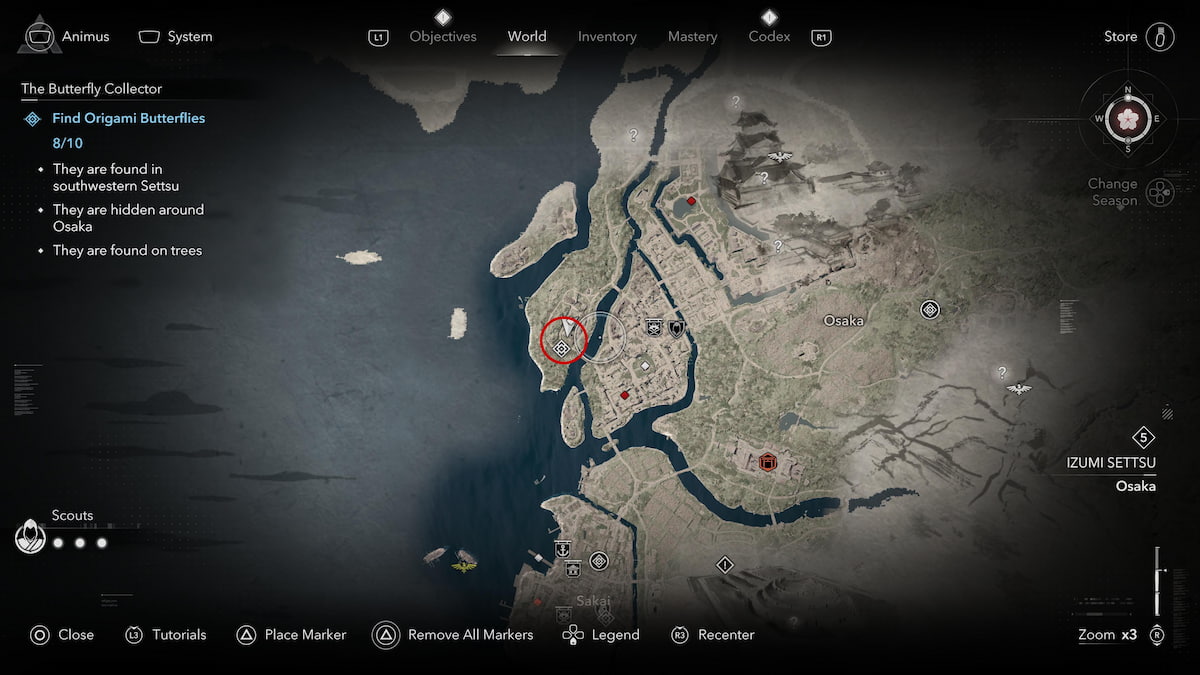 お勧めの読み取り:アサシンの信条の影:大阪の蝶をどうするか(すべて蝶の場所)