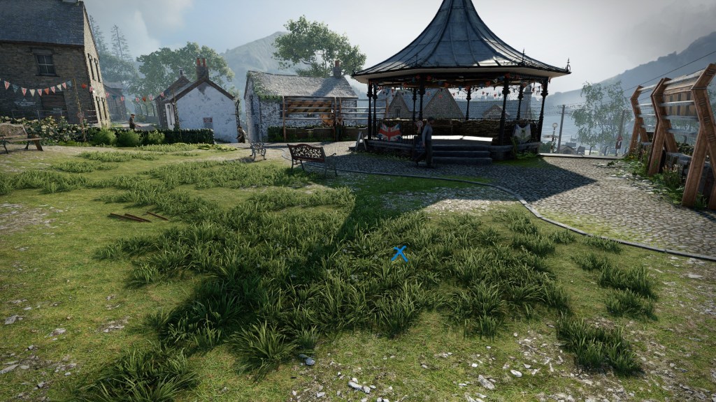 ビレッジグリーンに到着したら、南側に行き、階段を上ります。左にベンチがある記念碑に出くわします。強化された供給バンドルは、ベンチの左側へのパスに沿って行われます。検出器を使用するだけで、バンドルが発掘されます。