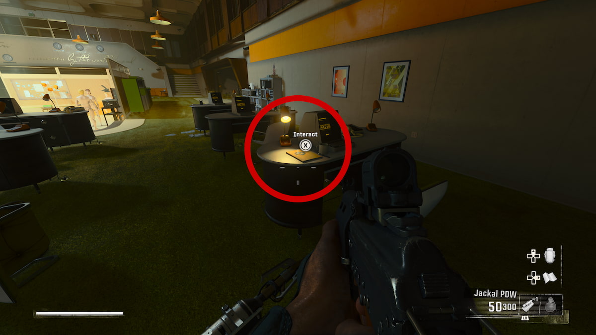 - カメラで共同プロジェクトディレクターのキーカードをつかんでみてください(敵のジャンプスケアの準備をしてください)
