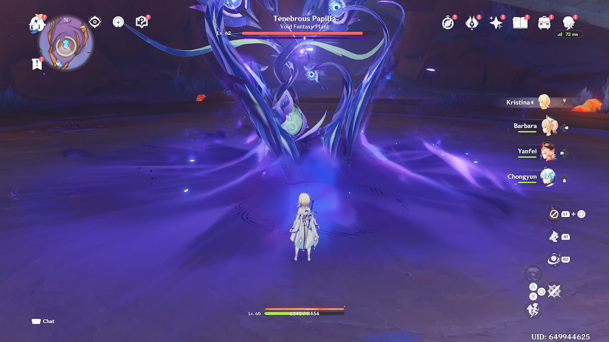 紫色の木のような姿に到達するまで、洞窟の中を前方に進みます。それにアプローチして、tenebrous papillaの戦いを始めましょう。また、ツリーの近くの近くのウェイポイントと対話して、いつでもこの段階に戻ることができます。