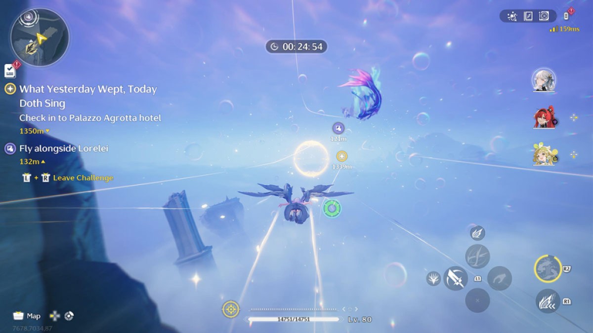 花と対話してロレライを召喚したら、音楽が演奏を開始し、空を通って彼女を追いかけてイベントを完了するのを待ちます。リンシタ全体のフライトチャレンジのいずれかを完了した場合、目的地に到達するためにパスのすべての風が鳴るだけであるため、これは難しくありません。