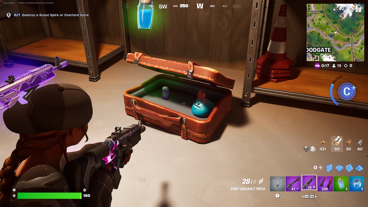10分が終わった後、ケースは開き、壮大な希少暴行ライフル、SMG、大きなシールドポーション、ガントレット、その他の便利なアイテムなど、いくつかの高い希少アイテムが明らかになります。これらのグッズが辛抱強く座ってケースを開くのに時間をかける価値があるかどうかはあなた次第です。また、忍耐のスーツケースの中には、Fortniteの初期の季節から認識するかもしれないかわいい友達がいます。