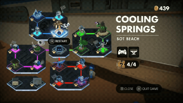 Astro's Playroomの特別なボット3は、冷却スプリングスボットビーチにあるグランツーリスモをテーマにしたボットです。