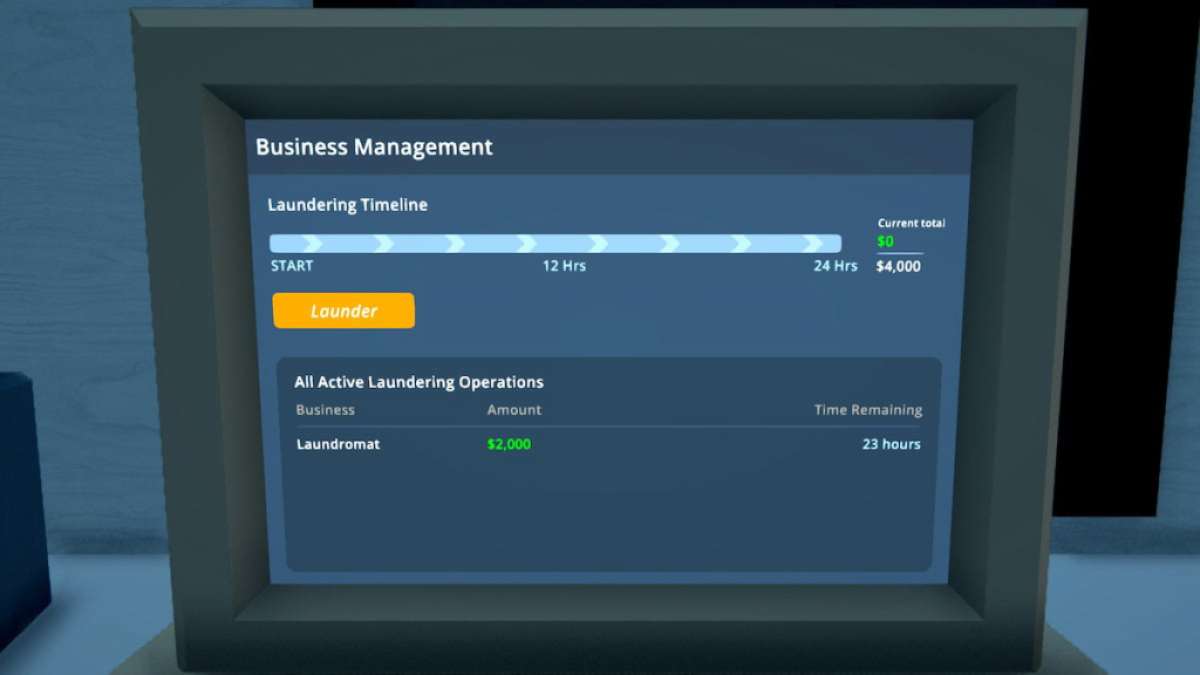 スケジュール1のプレイスルー中に、別々のビジネスを実行できることがすぐにわかります。彼らはあなたにお金を稼ぐことはありませんが、彼らはあなたにATMの毎週の現金預金制限を超えていきます。コインランドリーは最初にロック解除される可能性がありますが、郵便局はしっかりした2番目のオプションです。
