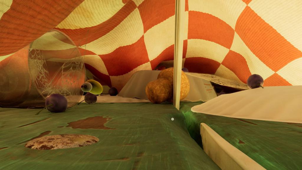 クーラーを通り抜けてテーブルの上部に到達すると、テーブルクロスの下に複数のブルーベリーがあります。オムニツールを使用してそれらを壊し、ブルーベリーのチャンクを請求します。彼らがあなたを不意を突かれた場合、彼らはトレッキング全体を簡単に台無しにすることができるので、ここのクモに気をつけてください。