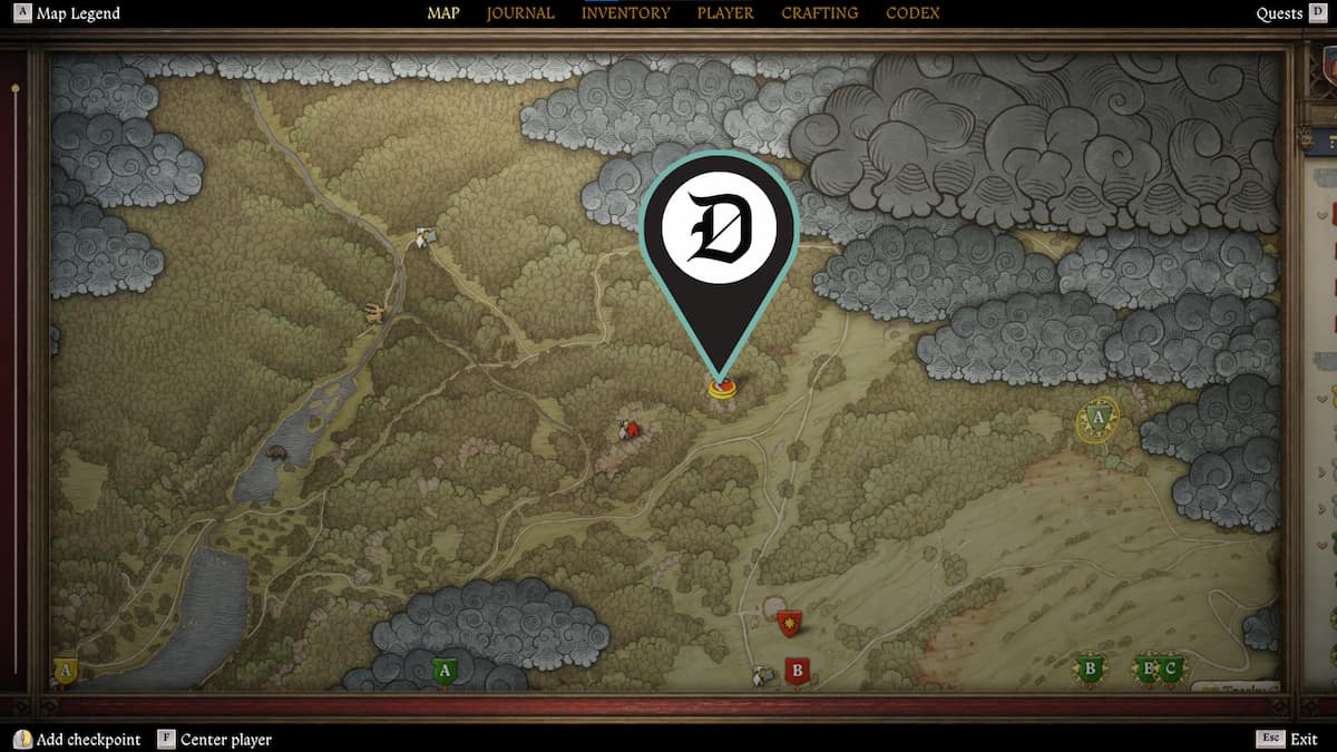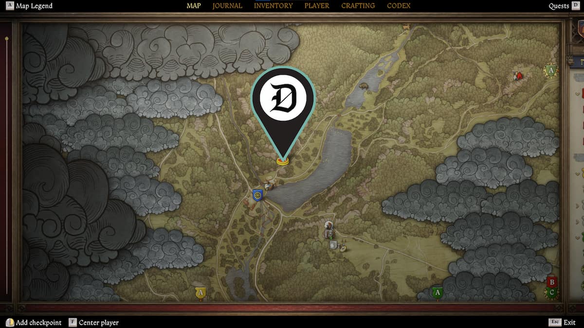 | ブランズウィックのプレートスリーブ | 最初のチェストから得られる2番目のマップは、Vidlak Pondの隣の地図の東側にあなたをもたらします。旅行ポイントを使用して町の中心に到着し、道路に沿って北に向かいます。岩に左を取る前に遠くに行く必要はありません。また、石の十字架の隣に胸を見つけることができます。 | ![]() |