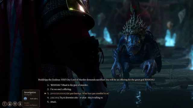 Kuo-Toaに近づくと、BG3の魚の人々が熱心な魚の人々は、彼らがブーーという名前の神を崇拝していることをあなたに言うでしょう。ここで何が起こっているのか、誰がブーーであるのかを理解するために質問することができますが、魚の人々に崇拝されます、次のオプションを選択する必要があります。